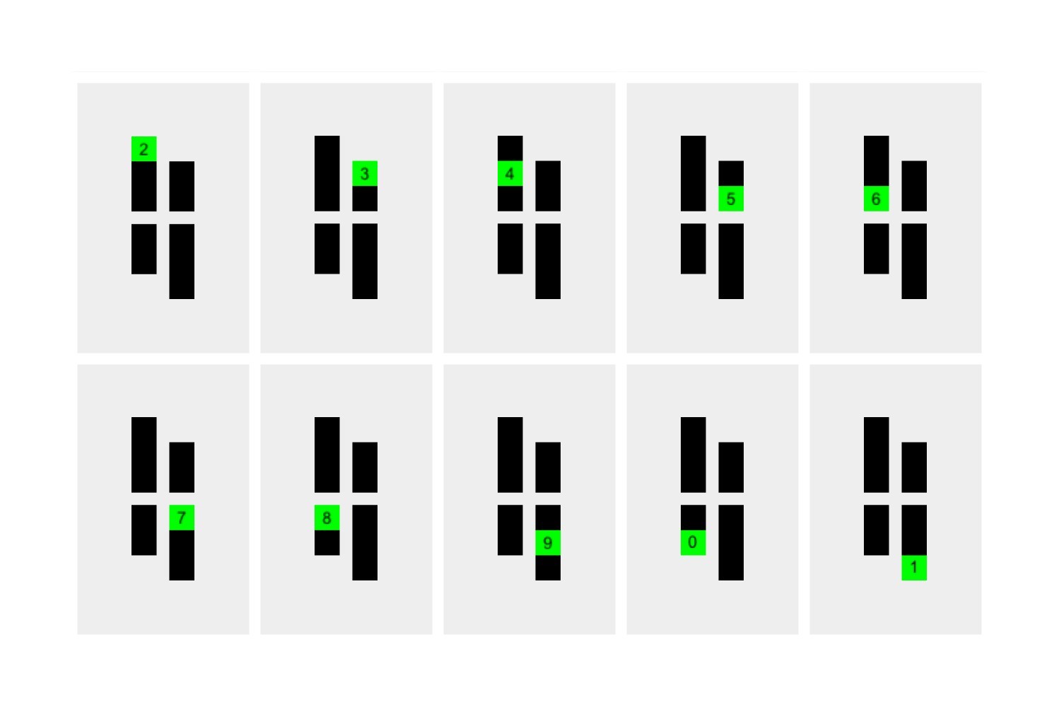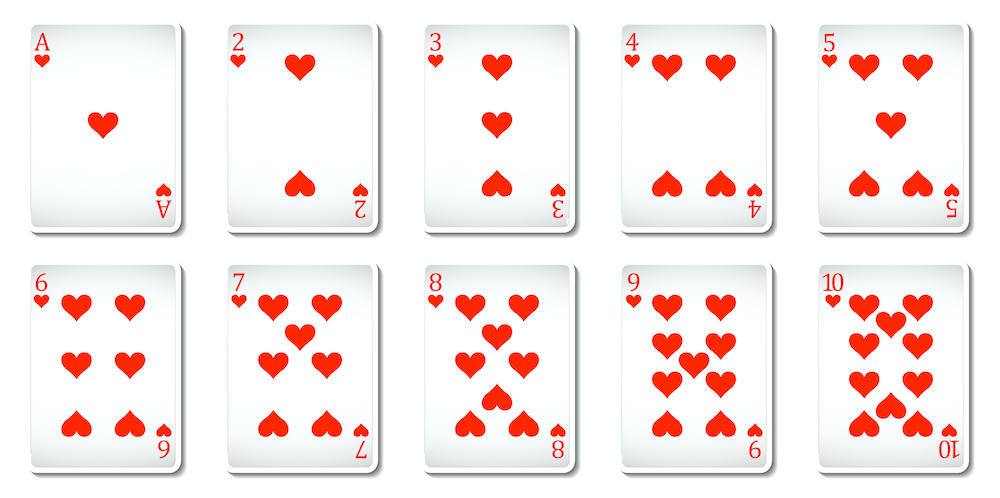 Car tous les nombres ne s’obtiennent pas par comptage : les nombres les plus petits, par conséquent les plus courants, ne sont généralement pas comptés, mais reconnus au premier coup d’œil comme des configurations*. Les joueurs de cartes ne s’arrêtent pas pour compter le nombre de figures sur un huit de pique et peuvent même reconnaître la disposition caractéristique des figures jusqu’au « dix ».